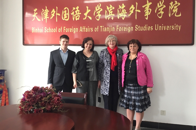 Делегация ТГУ имени Г.Р. Державина в составе проректора по учебной работе Ирины Налетовой, заместителя декана по учебной работе факультета филологии и журналистики Валентины Павловой и заместителя начальника управления международных связей по работе с иностранными студентами Максима Евстигнеева в рамках рабочего визита в КНР посетила город Тяньцзинь. Там состоялась встреча с руководством Биньхайского института международных отношений Тяньцзиньского университета иностранных языков.