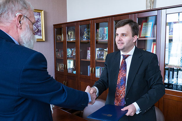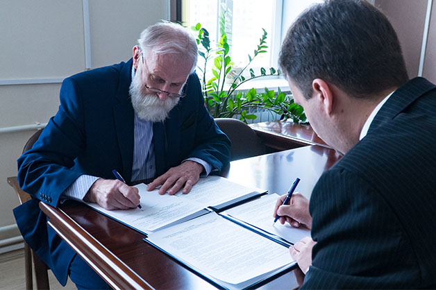 Директор Ассоциации выпускников Тамбовского госуниверситета Константин Астахов и руководитель Студенческой правовой консультации «Юридическая клиника» ТГУ Александр Золотухин подписали соглашение о сотрудничестве.