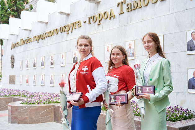 В этот день у Доски почета державинцам вручили памятные знаки за вклад в волонтерскую деятельность. Наград удостоены студенты Медицинского института Наталья Кузнецова, Мадина Билалова, Кристина Сафронова и студент Педагогического института Виктор Ромашкин.