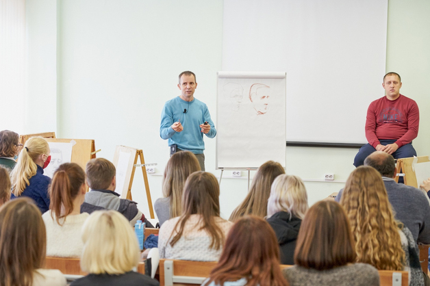 В Державинском университете прошел мастер-класс преподавателя рисунка и пластической анатомии, доцента МГХПА имени С.Г. Строганова Александра Рыжкина. Авторскую методику написания академического рисунка изучали студенты факультета культуры и искусств.