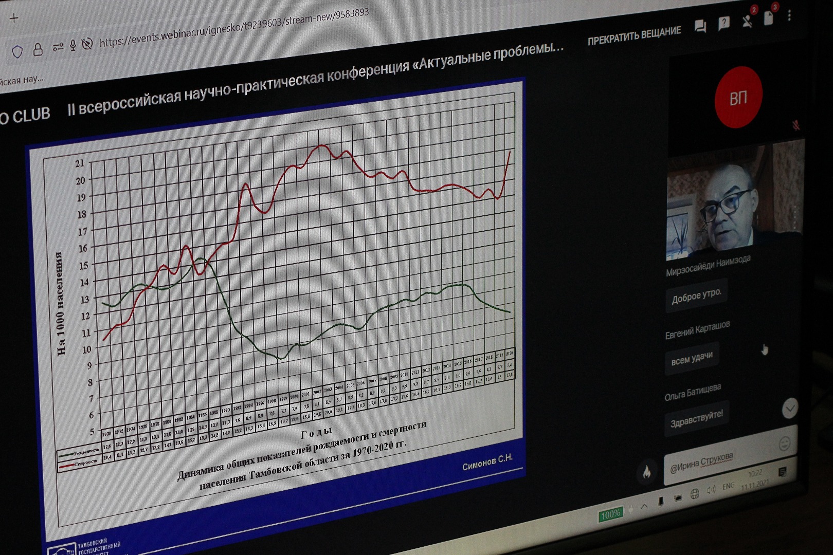На пленарном заседании участники заслушали девять докладчиков. Исследование «Репродуктивная демография: теоретические и эмпирические предпосылки становления новой интегративной области знаний» представил д.м.н., профессор Державинского Сергей Симонов.